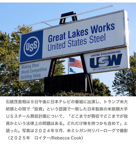 (最新追加)2025/4/1のニュース報道から : [31日 ロイター] - 日本製鉄(5401.T) の森高弘副会長は4月1日にラトニック米商務長官と面会する。米メディアのセマフォーの記者が関係筋の話として31日、Xへの投稿で明らかにした。日鉄による高炉投資拡…