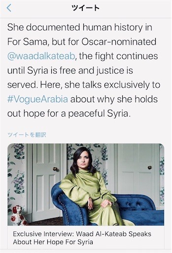 途中に主人公で撮影者のWaad 嬢の写真を載せた。映画を見終わって即座に彼女のTwitter実名アカウントを検索、フォローした。