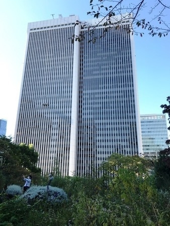 ルーフガーデンの階段の向こう "霊南坂教会”